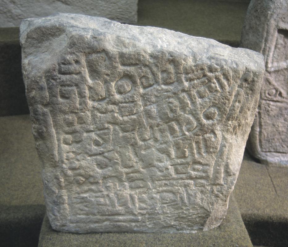 Rough pillar stone; featuring a incised combined outline and linear Latin cross with bifid terminals.