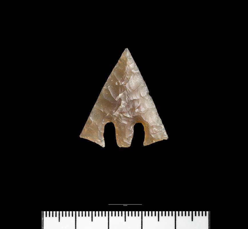 Nodiadau: found during emergency excavations carried out by the Dept. of the Environmant at Pen-y-wyrlod long cairn from the middle of the floor, 3' from the South East end of chamber NE II