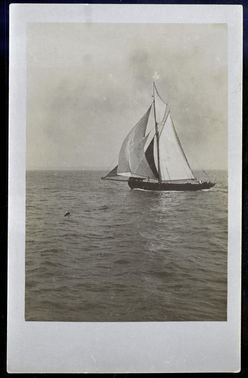 Photograph of the wherry MARY GOLDSWORTHY on the beach at Nefyn waiting to discharge a cargo of coal.