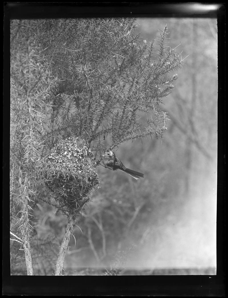 A Redstart (Phoenicurus phoenicurus) at nest, Builth Wells. Photographed in 1931.