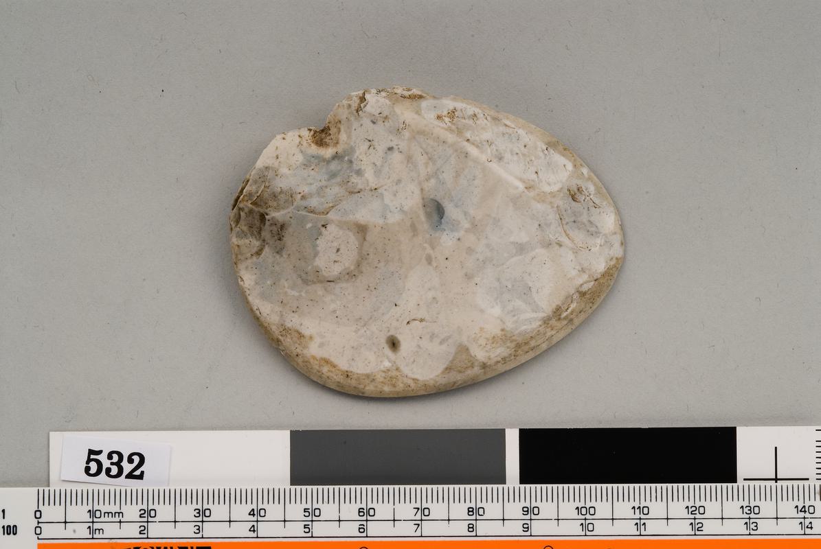 Pen saeth fflint siâp deilen, 4000-3000 CC. Daw o Ferthyr Mawr, Bro Morgannwg. Defnyddiwyd darnau o asgwrn neu gorn carw i naddu darnau mân iawn o ymylon y fflint.