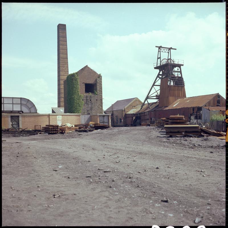 General view of upcast shaft at Garw Colliery, Blaengarw. Photographers stamp on reverse.