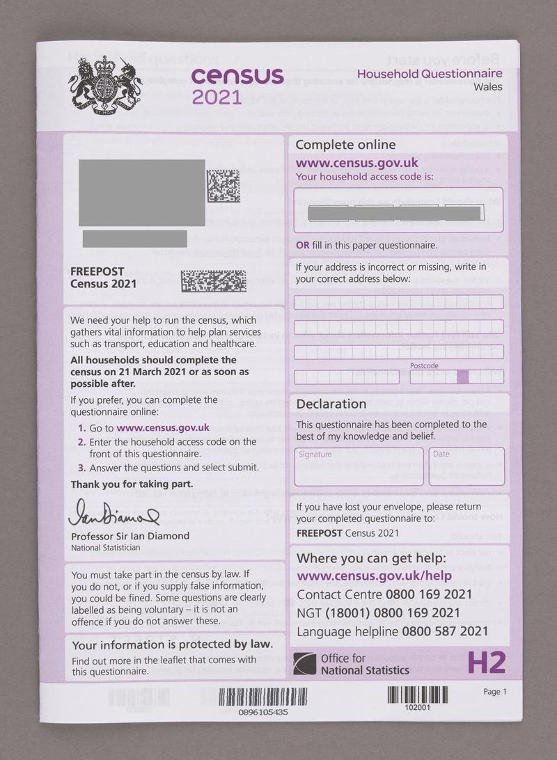 Leaflet 'The census is coming'. Sent to address in Cardiff.