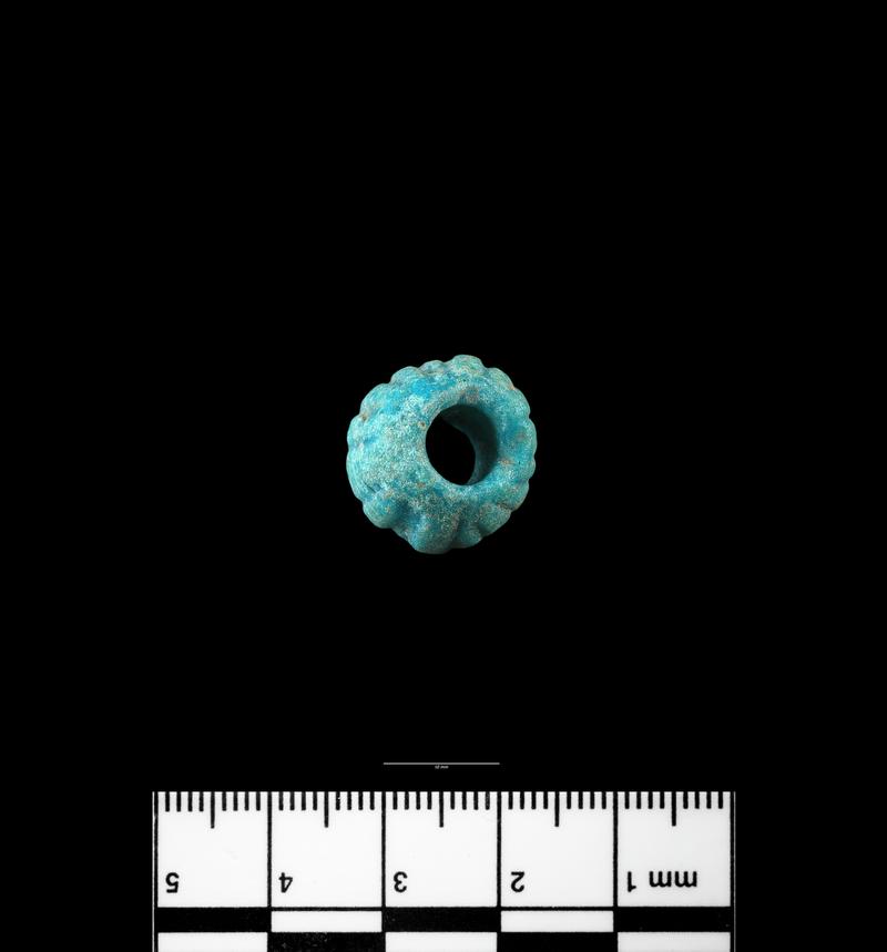 Melon-shaped bead in turquoise glass paste - about a quarter remaining