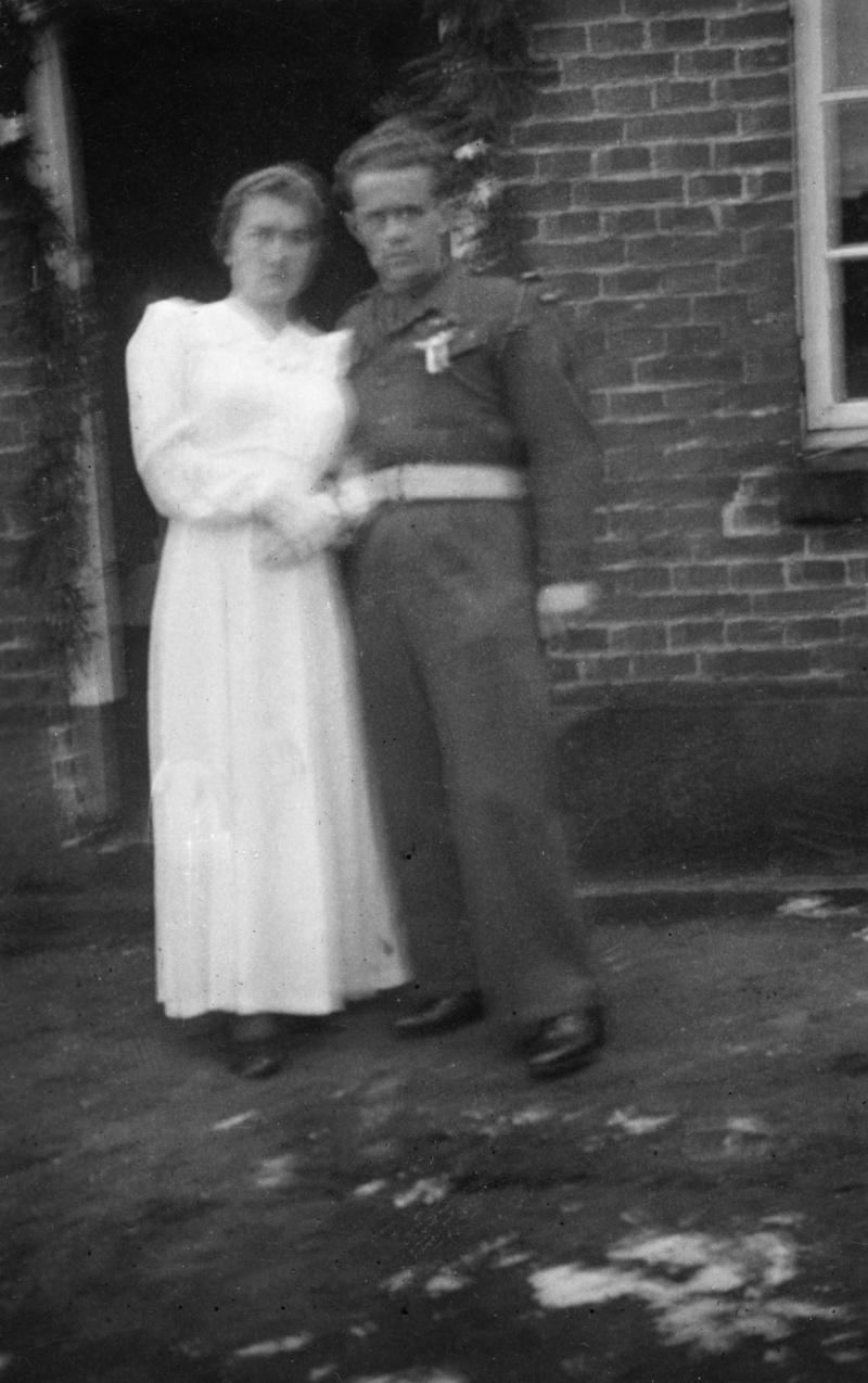 Benadykt ('Ben') and Gwenofa ('Jenny') Winogorski with their baby son Jerzy ('George'). Benedykt was born in Poland in 1922. After the war he came to Wales and started work at Bargoed Colliery.