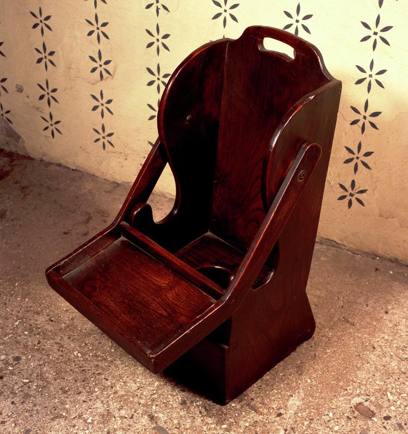 Pair of child's clogs, tan, with strap and buckle, rubber on heels and soles. Size 12