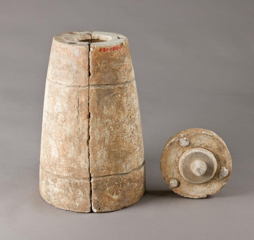 Rhan o mowld canhwyllbren teir darn o Grochendy Ewenni, tua 1900.