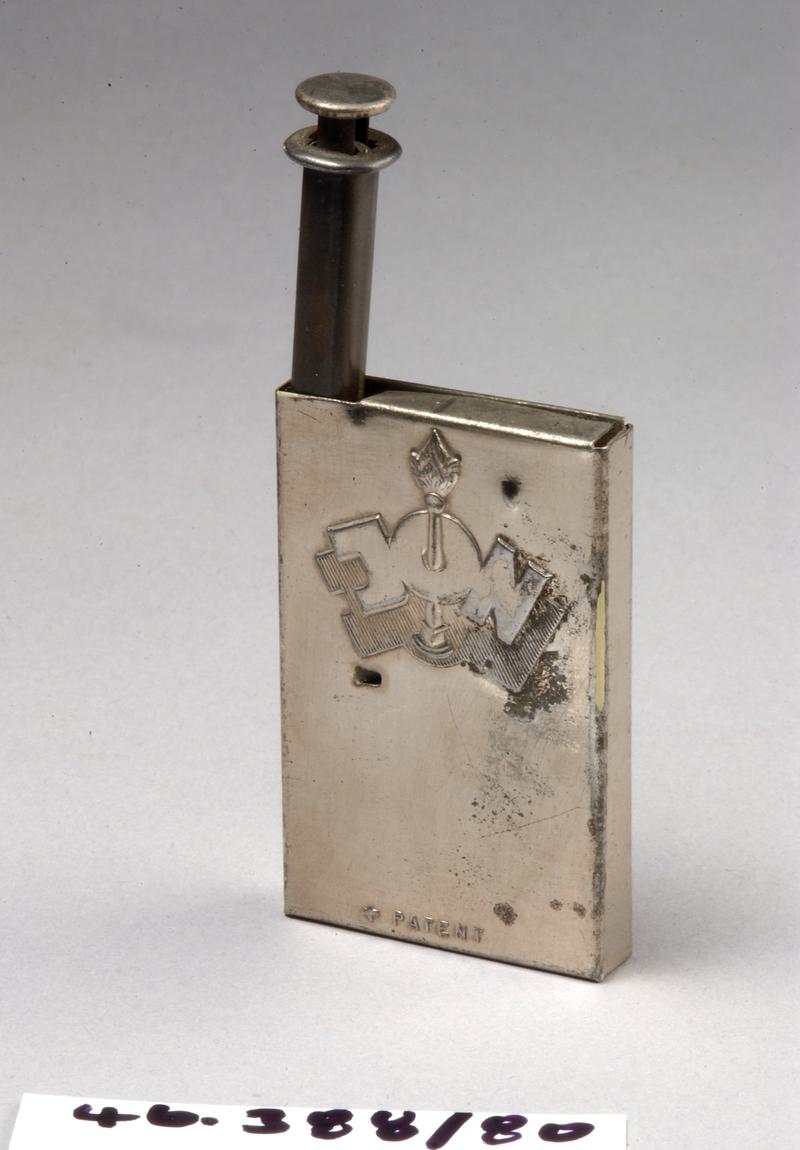 Tinder box with magnifying glass.
