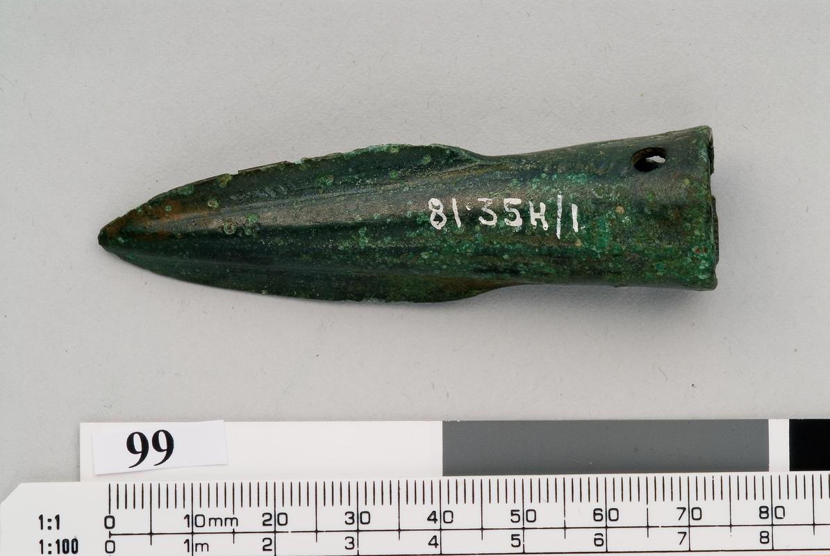 Nodiadau: Found lying on its side in a beat bog approximately 3/4 of a mile SW of Capel Garmon Church, with a large stone at each end, having probably been a votive deposit in a pool, in what afterwards became a turbary on the above farm.