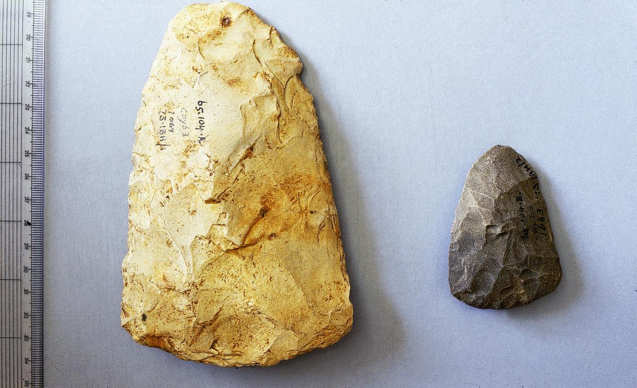 Bwyell law cwartsit o rhandir ym Mhen-y-lan, Caerdydd. Cafodd y teclyn fflint hwn ei defnyddio i fwtsiera tua 300,000 o flynyddoedd yn ôl.