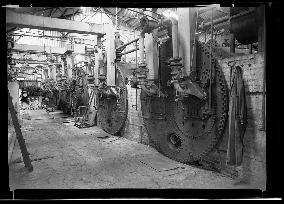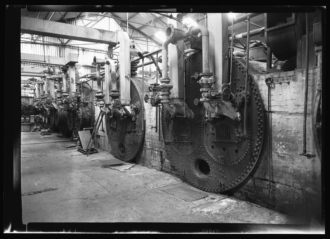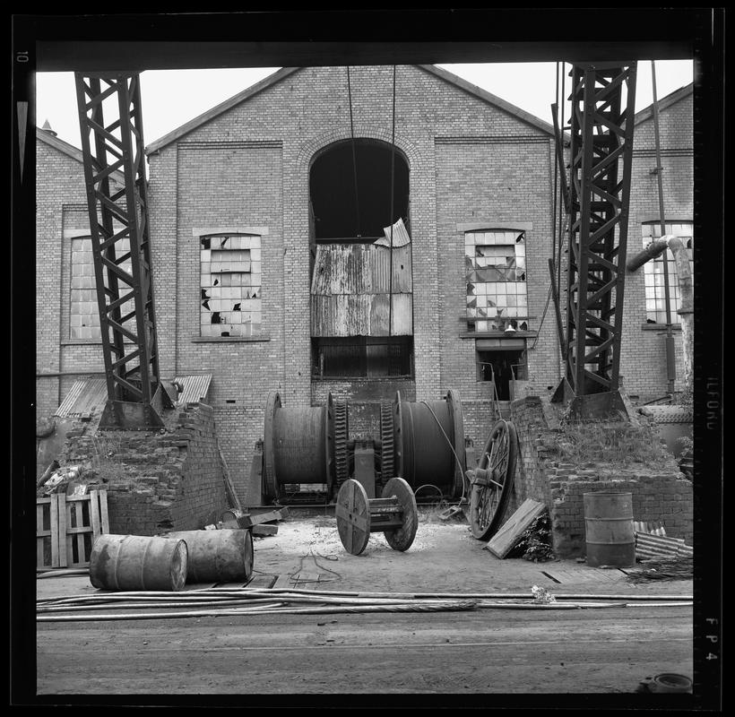 Negatif ffilm du a gwyn yn dangos tŷ'r injan stem Markham ar y siafft awyru, Glofa Cefn Coed.