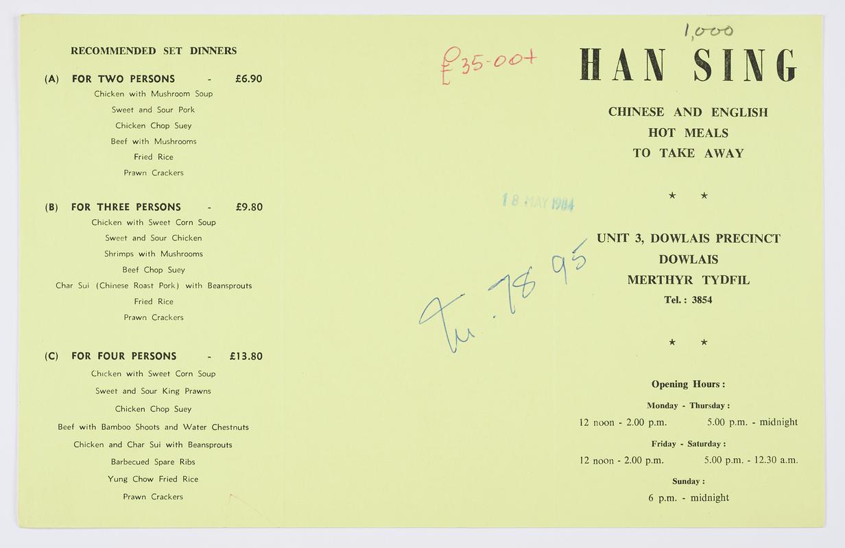 Wine list for 'Kismet Restaurant', an Indian restaurant in Cathays, Cardiff. Two pages. Handwritten annotations on both pages.