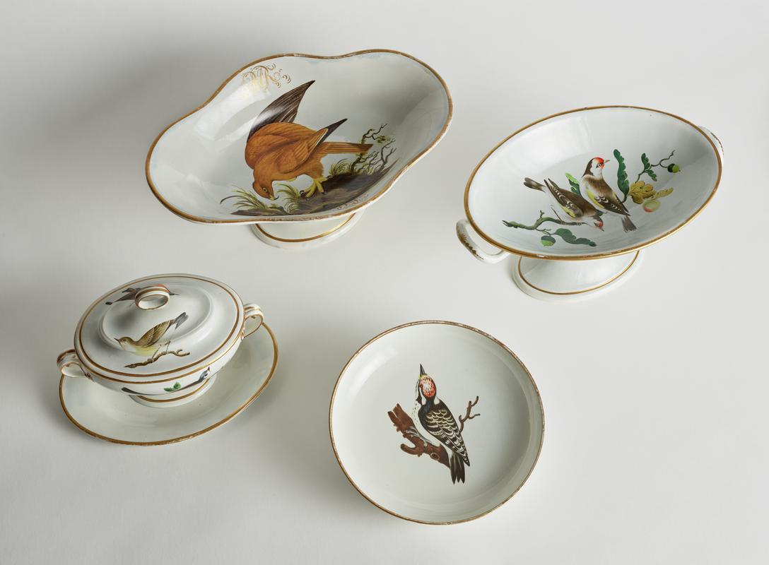 Cambrian Pottery (Established in Swansea in 1764, the Cambrian Pottery reached its creative peak under the proprietorship of Lewis Weston Dillwyn (1778-1855), who ran the Pottery (with a break between 1817 and 1824) from 1802 to 1836. Lewis Weston Dillwyn was a natural scientist, antiquarian, Member of Parliament, magistrate and landowner whose intellectual interests drove the Cambrian Pottery to become one of the most ambitious and artistically accomplished British potteries of the early 19th century. While the porcelain manufactured in Swansea between 1814 and 1825 justifies its reputation as among the finest of British porcelains, the pottery produced under Dillwyn’s ownership between 1802 and about 1809 was at its best an equally impressive achievement, most particularly that made for sale in the Pottery’s Cambrian Warehouse in London 1806-1808, the context for which this supper service was most likely created.)