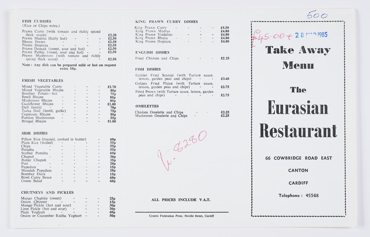 Takeaway menu printed for 'Royal Tandoori', Ystrad Mynach.