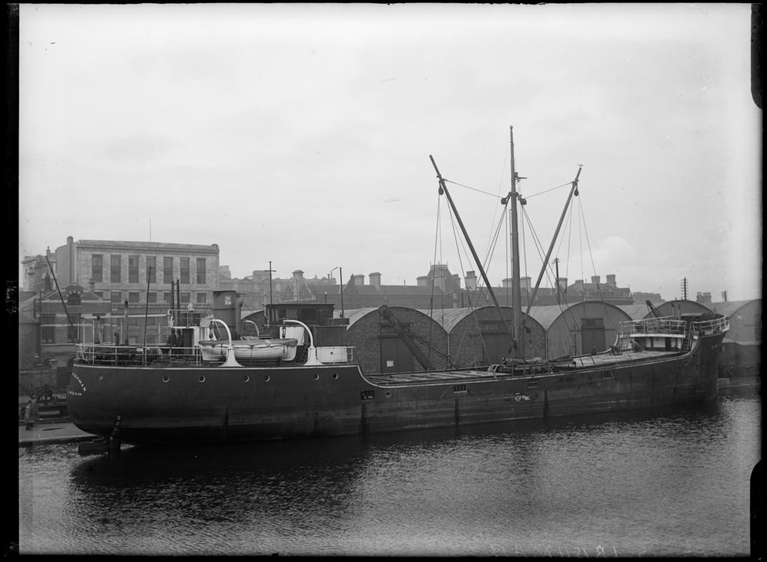 3/4 port stern view of S.S. DALEMOOR at Cardiff Docks, c,1936.