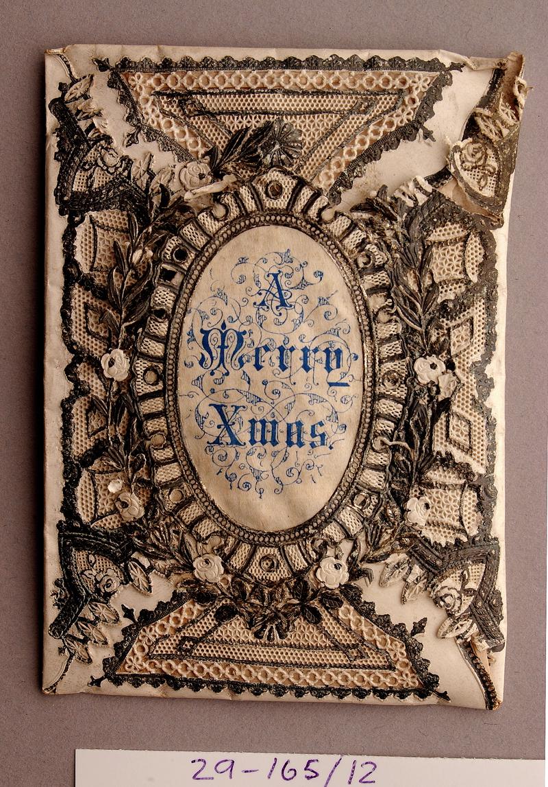 Christmas greeting with blue floral design.