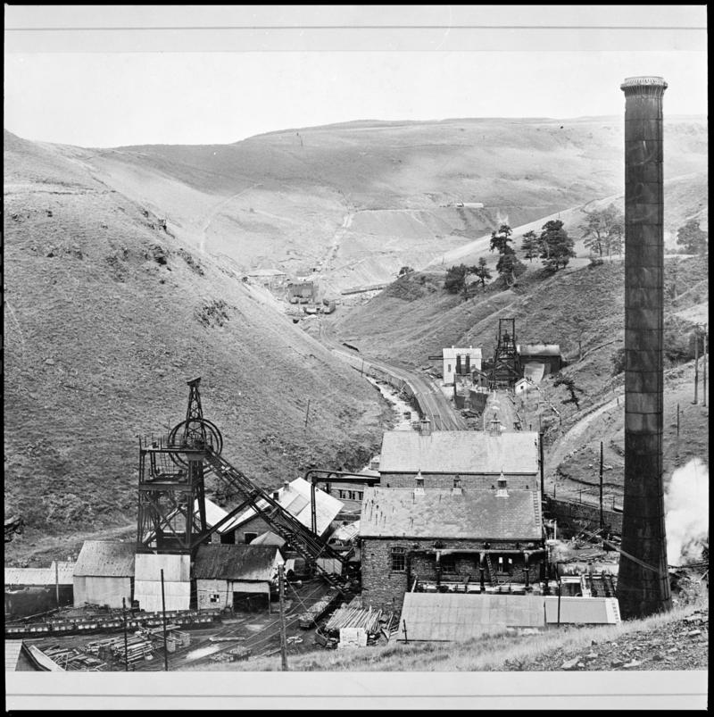 Black and white film negative showing the remains of the ventilation furnace at Tymawr Colliery. The furnace was situated on the No. 3 landing in the Hetty shaft. 'Hetty furnace' is transcribed from original negative bag.