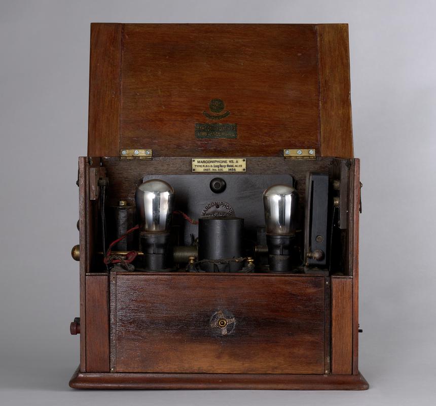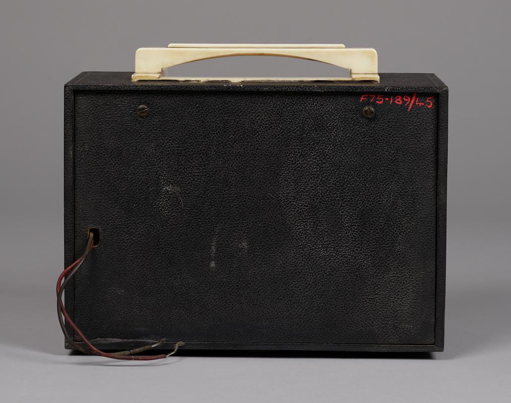 Table top radiop set; McMichael; 9 valves; press button tuning and electronic magic eye tuning; wooden case.