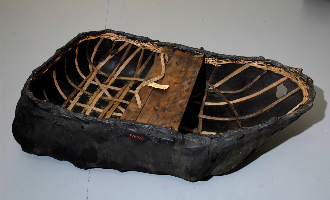 River Dee type coracle of 19th century date from Bangor-Is-Coed (Bangor-on-Dee).