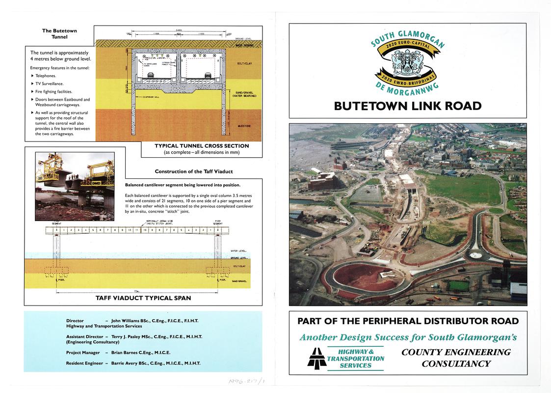 1:150 scale model - Cross Section of Taff Viaduct on the PDR Cardiff-Butetown Link. On grey wooden plinth with wooden step in front to stand on. Perspex top. (possibly plugs into electric to light up row of lights inside viaduct).