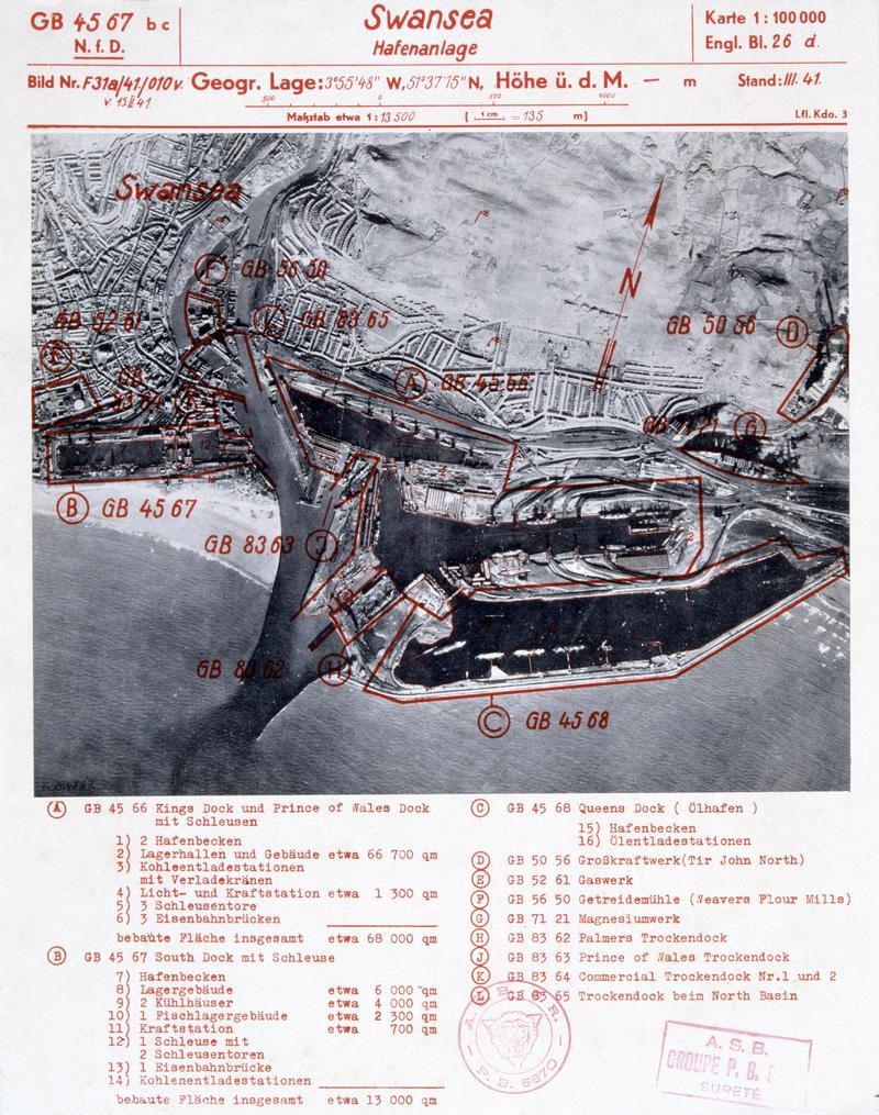 Photograph copied on white paper with details in German. Airbase outlined in red. Numbered 'GB 10 292 bc'.