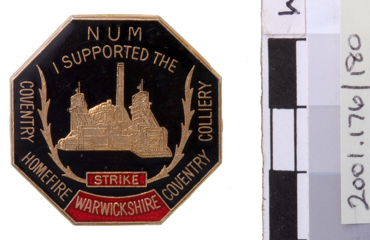 Oval gold coloured metal badge with Welsh dragon and and inscription set in white, green, red and black enamel. Clasp attachment on reverse broken off and missing.