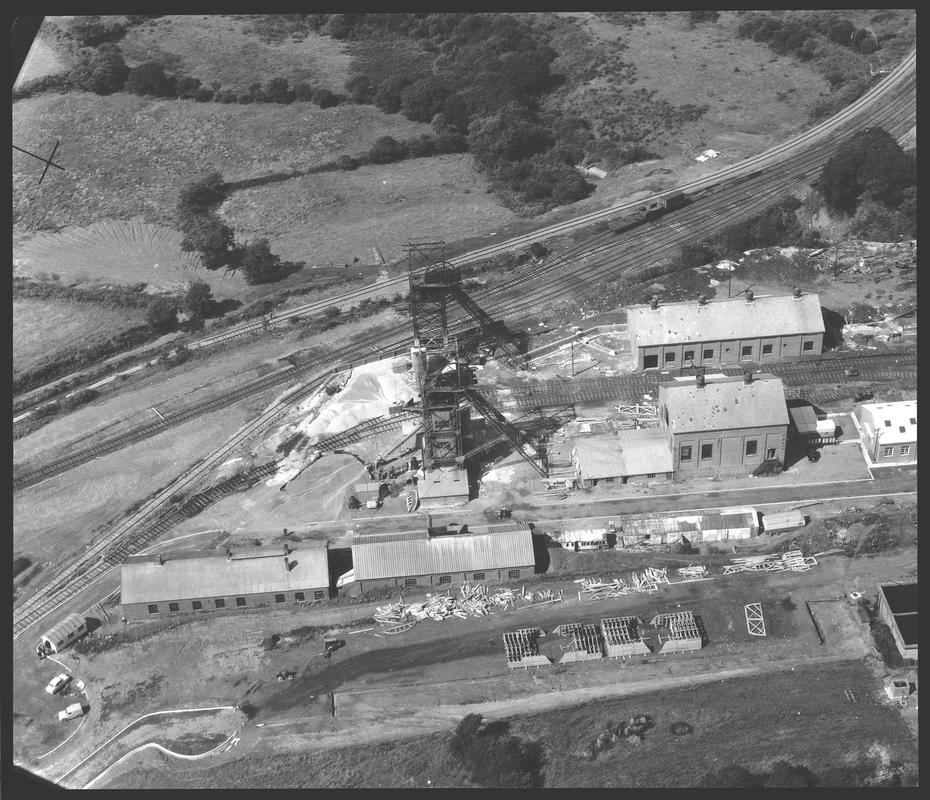 Aerial view of coal tip near Lewis Merthyr Colliery.