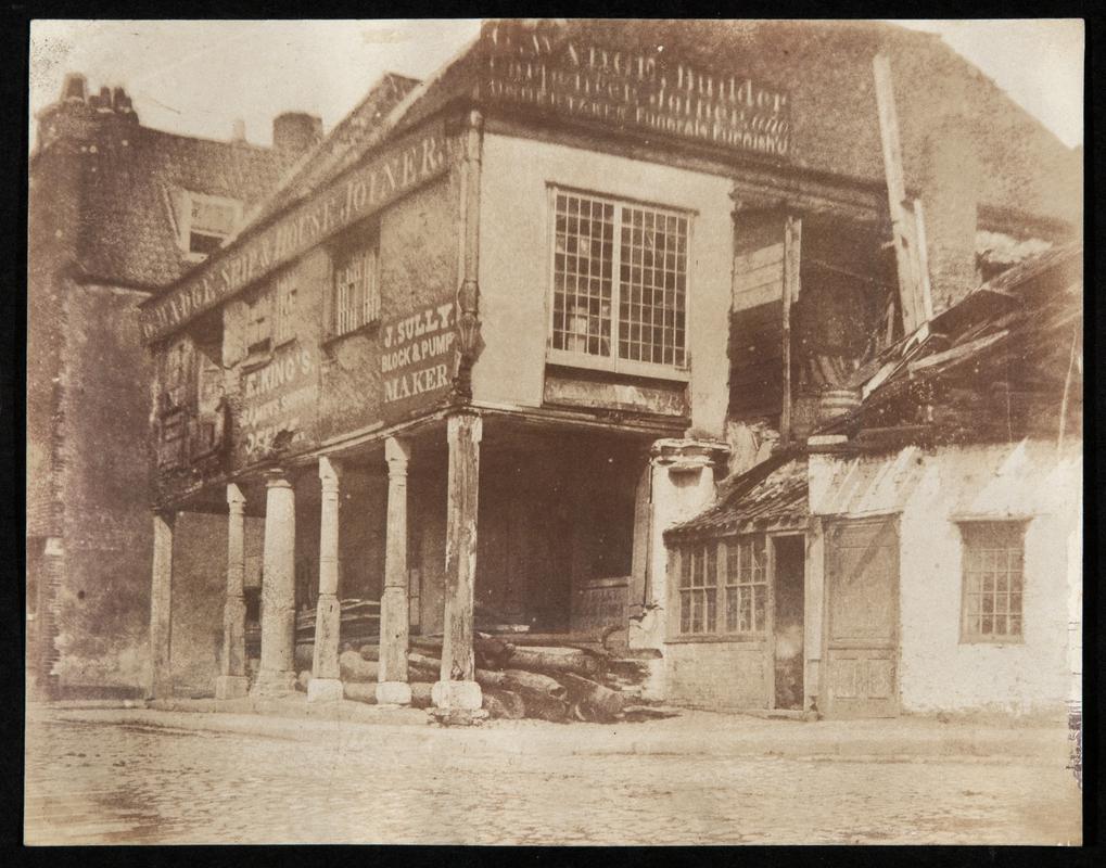 Salted paper print. Two girls in front of the porch at Penllergare House. Table, vase of flowers and part of a wicker chair are also shown.