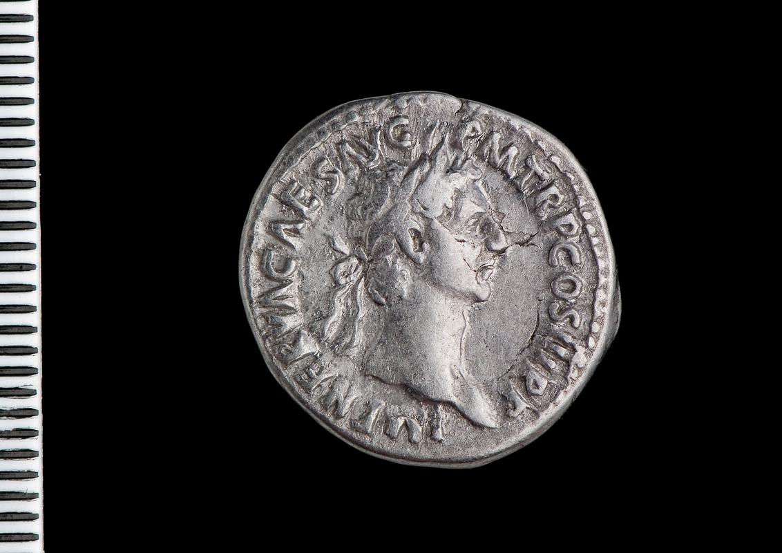 Nodiadau: Ten coins were found together in Room 34 beneath the concrete floor of the room in a charcoal layer contemporary with the initial timber structure