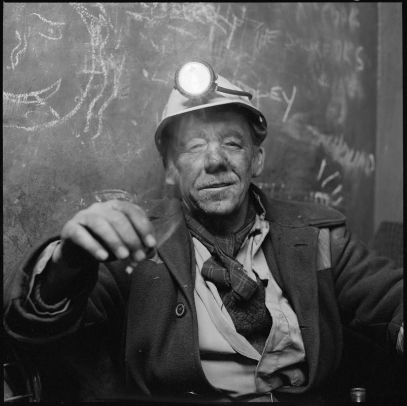 Colour film negative showing a man riding engine and operator, Cwmtillery Colliery.
