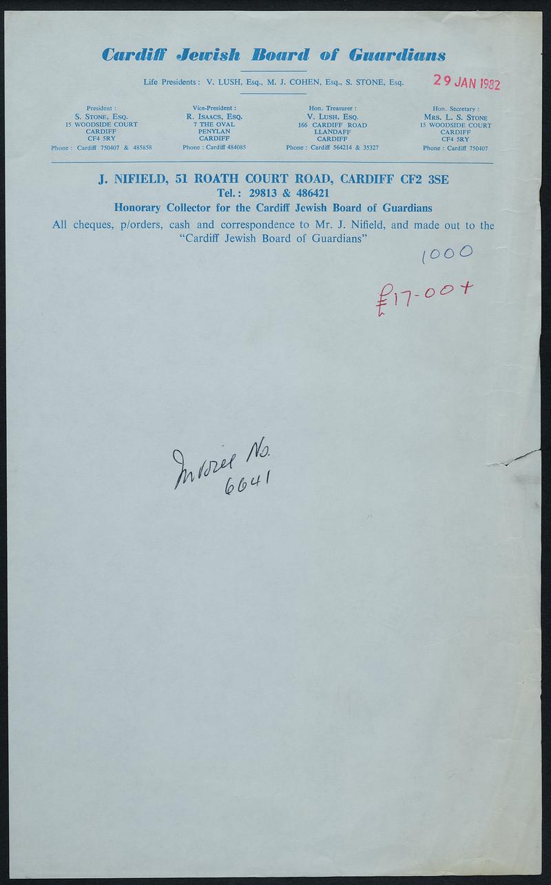 Business card 'Rocrest Marketing. Wholesalers & Retailers', a division of R.W. Holland (Properties) Limited, Cardiff. Attached to a Cymric Federation Press order form, dated 13 January 1977.