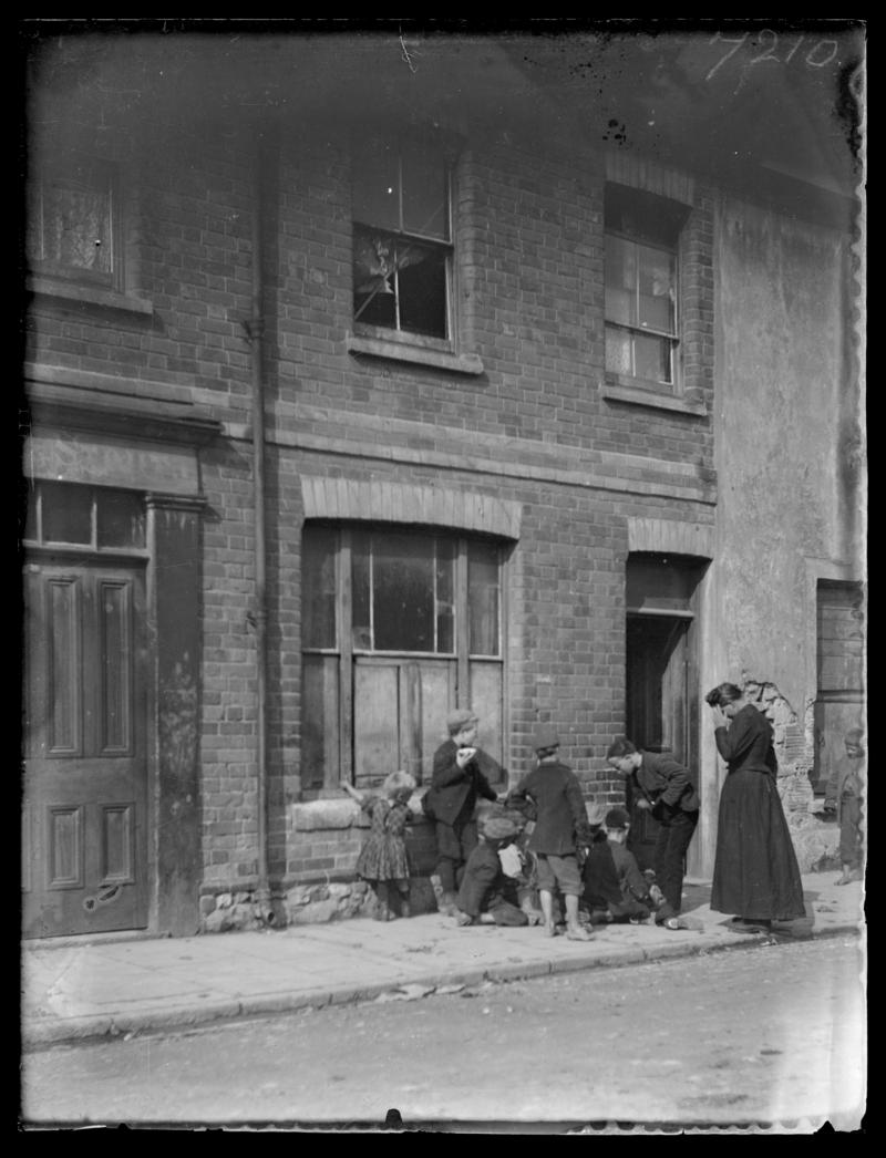 The Hotel de Marl was set up in an area of Grangetown, Cardiff by local men trying to evade the 1881 Sunday Closing Act, banning the sale of alcohol in Welsh pubs. The hotel was actually a series of pits dug into the ground for drinking men to meet up in and drink on Sundays. These pits were considered legal after a court case ruled that they were a crude form of gentlemens club, therefore drinking was allowed within these types of club. Here the caption reads, 'In Full Swig', as the men were busy drinking. The photograph was taken on Sunday 28 May 1893. The Hotel de Marl was between Ferry Road and the River Taff.