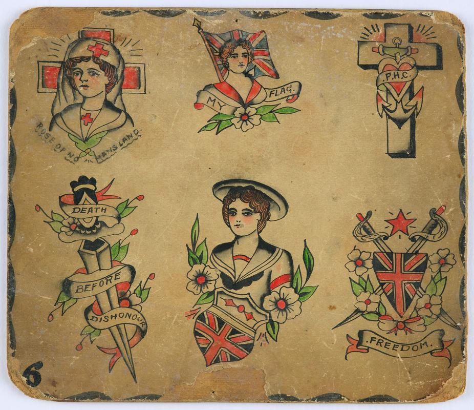 Flyer printed in red and blue with the text TATTOOING WORLD FAMOUS TATTOO ARTIST 'JESSIE' 'Emperor of India' written in pencil on reverse