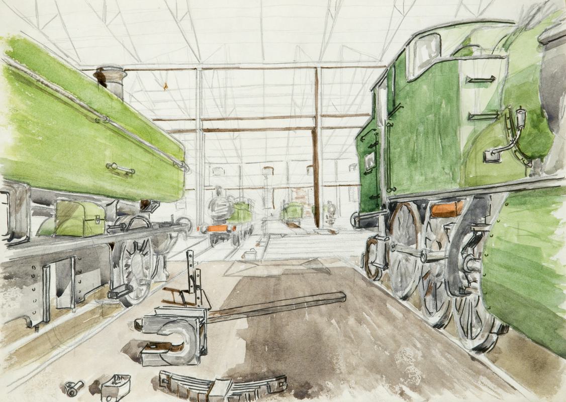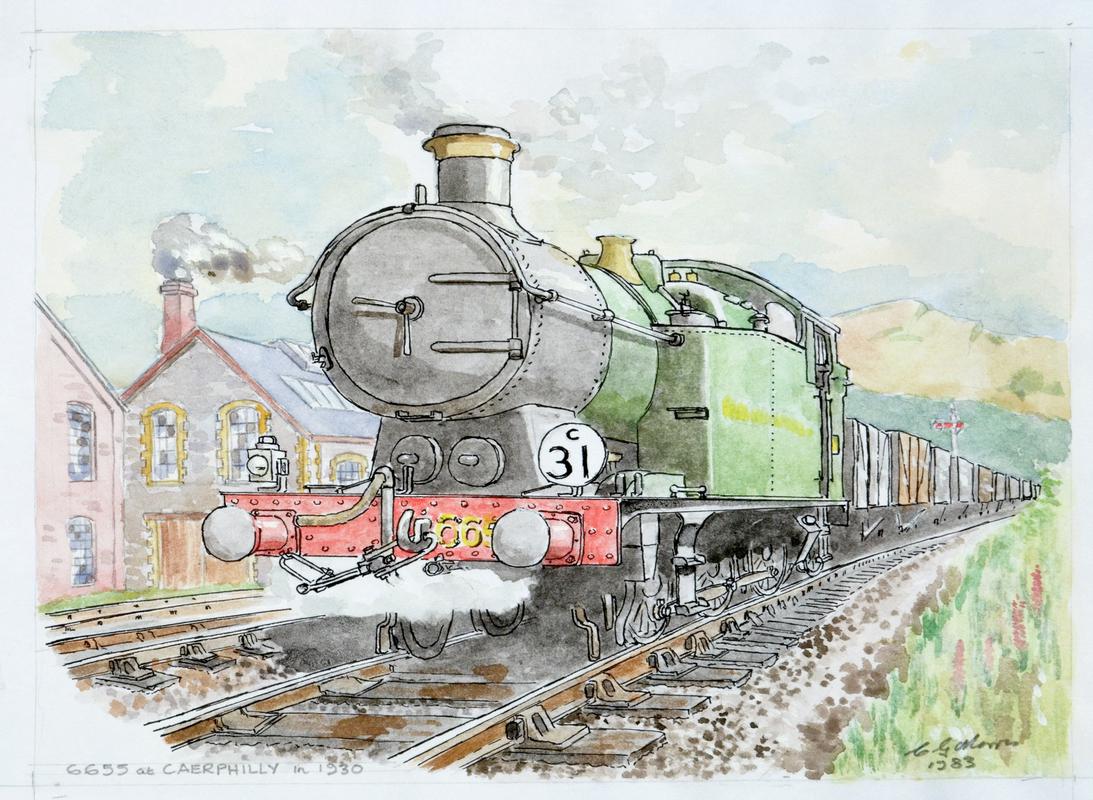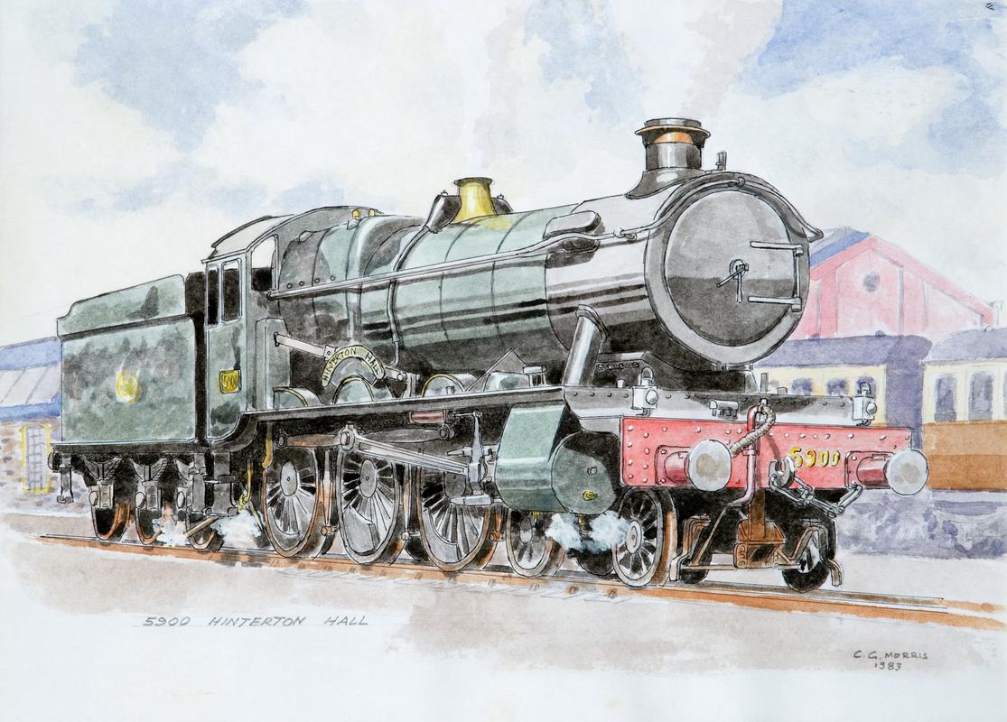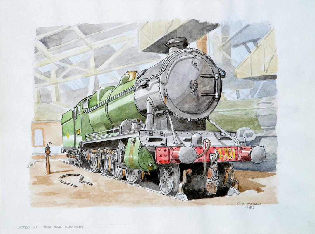 Print of a locomotive by donor, 1980. 'C.G.Morris 1980' handwritten in pencil on mount.