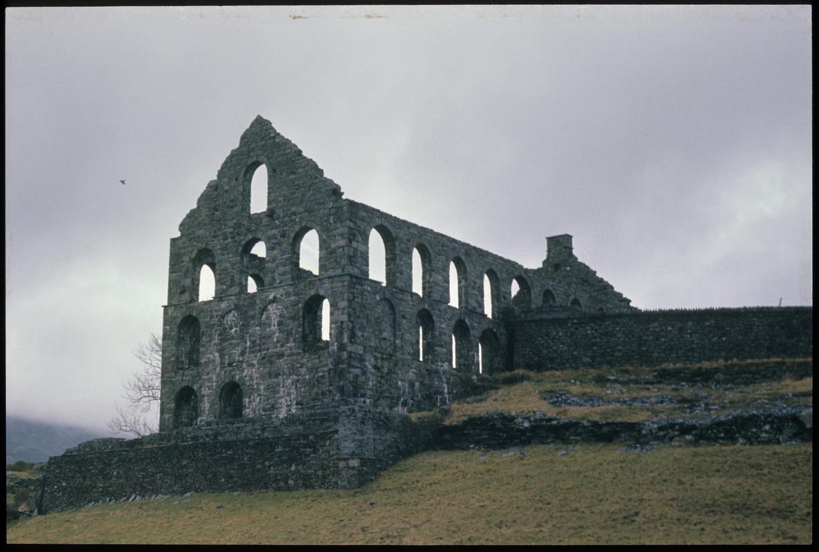 Colour slide showing Gorseddau Quarry cutting waste, 1970s