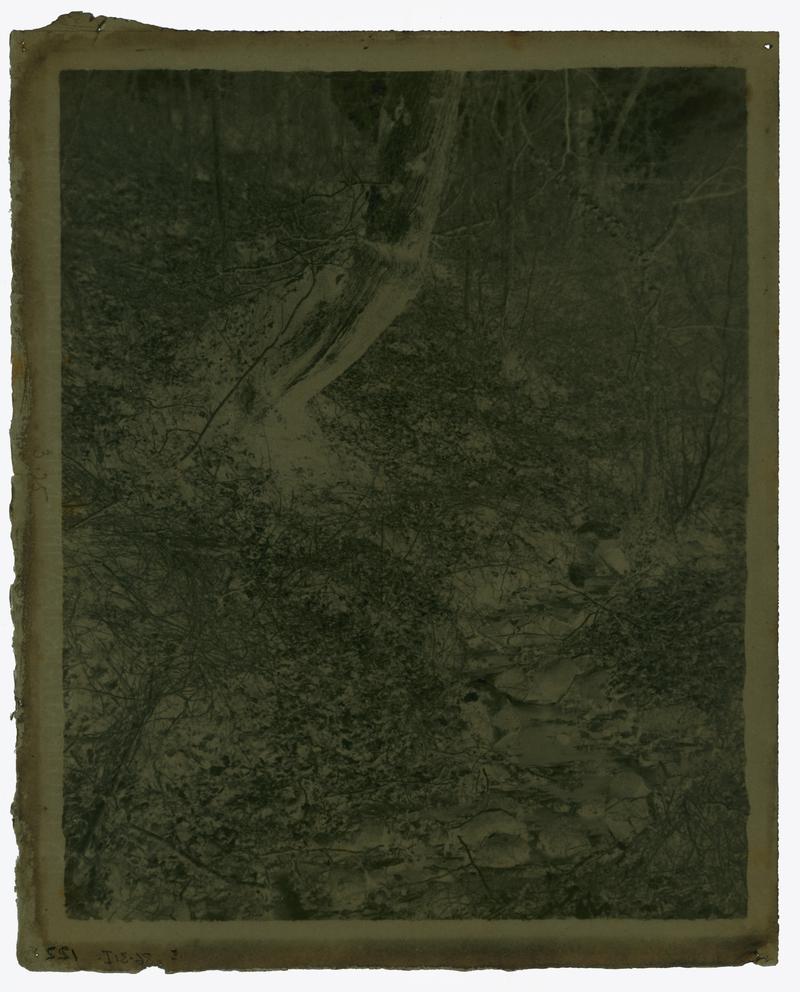 Calotype (negative) with no tabs at corners. Unwaxed. River running through dense woodland. Probably taken on the Penllergaer estate or the Dulais Valley vicinity.