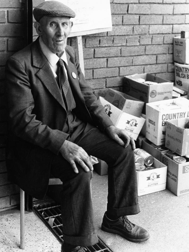 Unknown miner with badges during the 1984/1985 miners' strike.