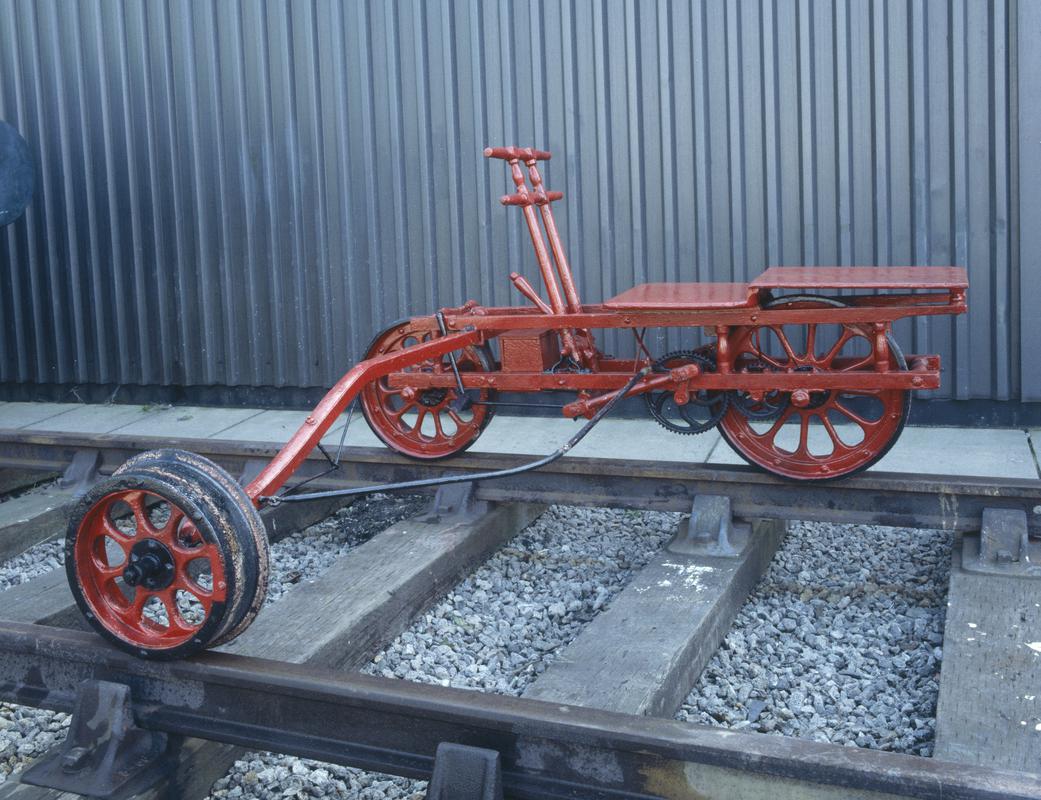 Long key, white handle with metal shaft painted black.