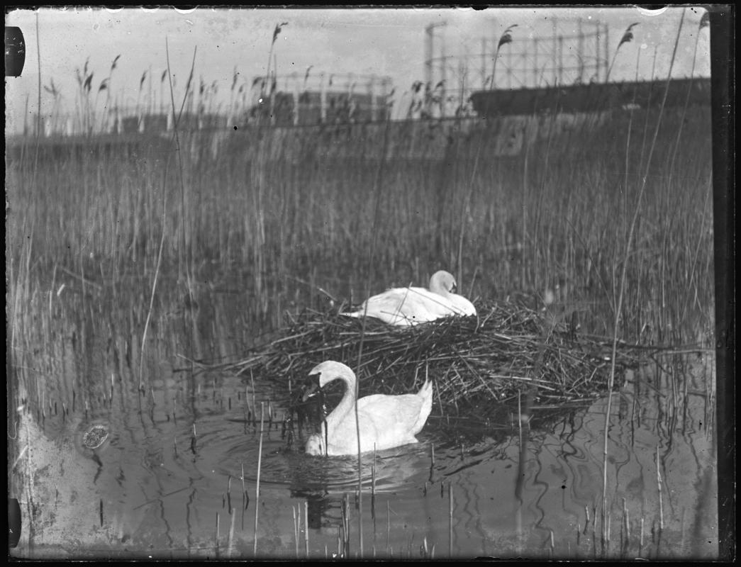 Little Grebe nest, glass negative