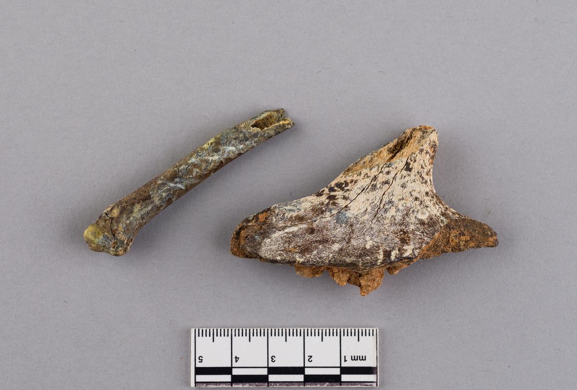 Nodiadau: found during excavations by Frere Jacques Van Nedervelde in and immediately outside above, from the blown sand on the slope outside the cave