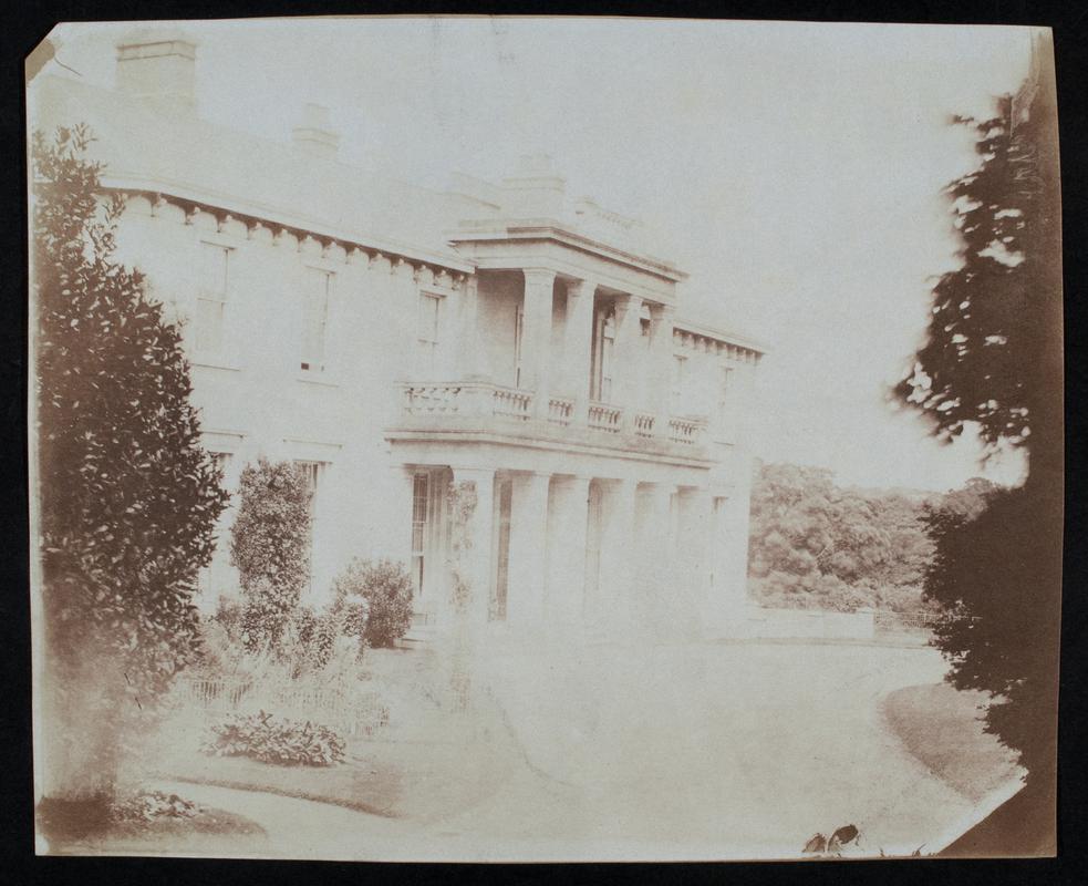 Mounted salted paper print. Sportsman (possibly Willy Llewelyn) holding gun, with dog, at Penllergare.