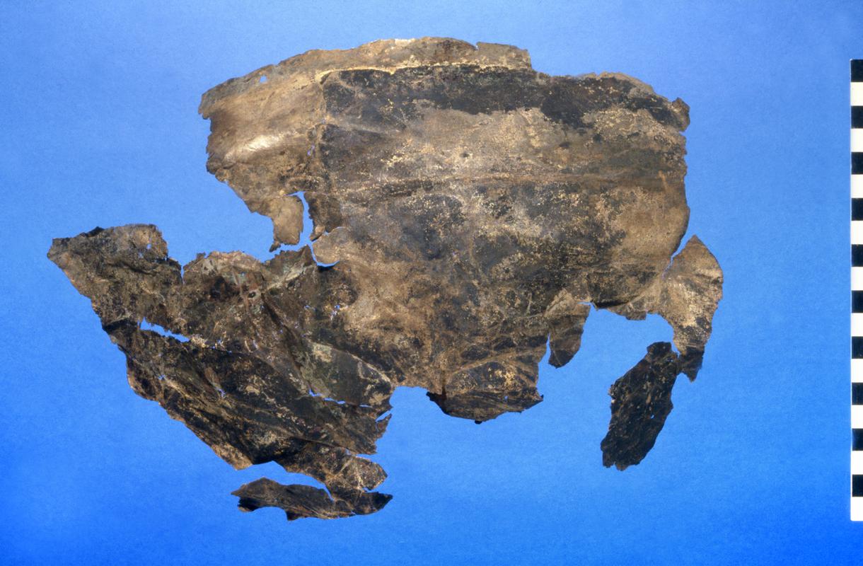 Penannular, copper alloy tubular rein-ring, too distorted to reconstruct the original dimensions but curvilinear in shape and circular in cross-section (diameter 8mm) with a butt-join on the inner-face. Each end of the rein-ring is pierced by two pairs of diametrically opposed rivet holes (diameter c.2mm) set on the upper and lower sides. The inner pairs on both sides show considerable wear facets around their circumference, caused by lost stop-studs, giving the ring a pinched appearance. Wear facets are also observable on the inner-face at each end of the ring.