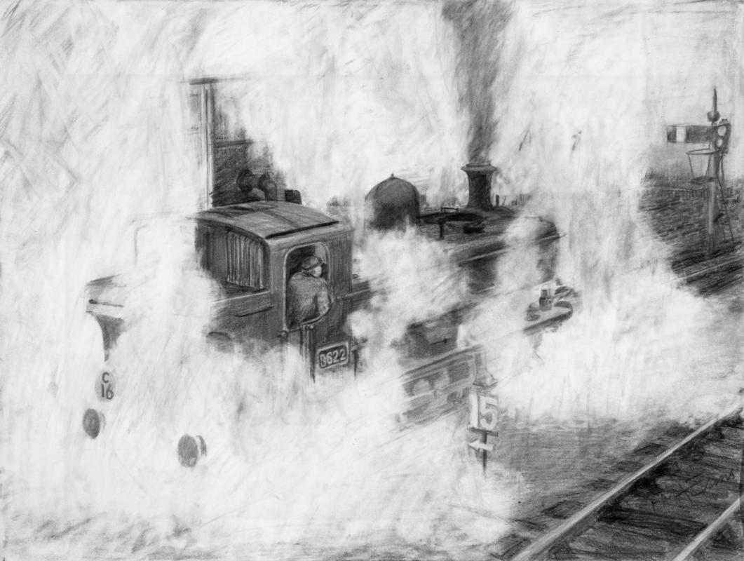 56xx Locomotive Passing Through Pontllanfraith Low Level Station (drawing)