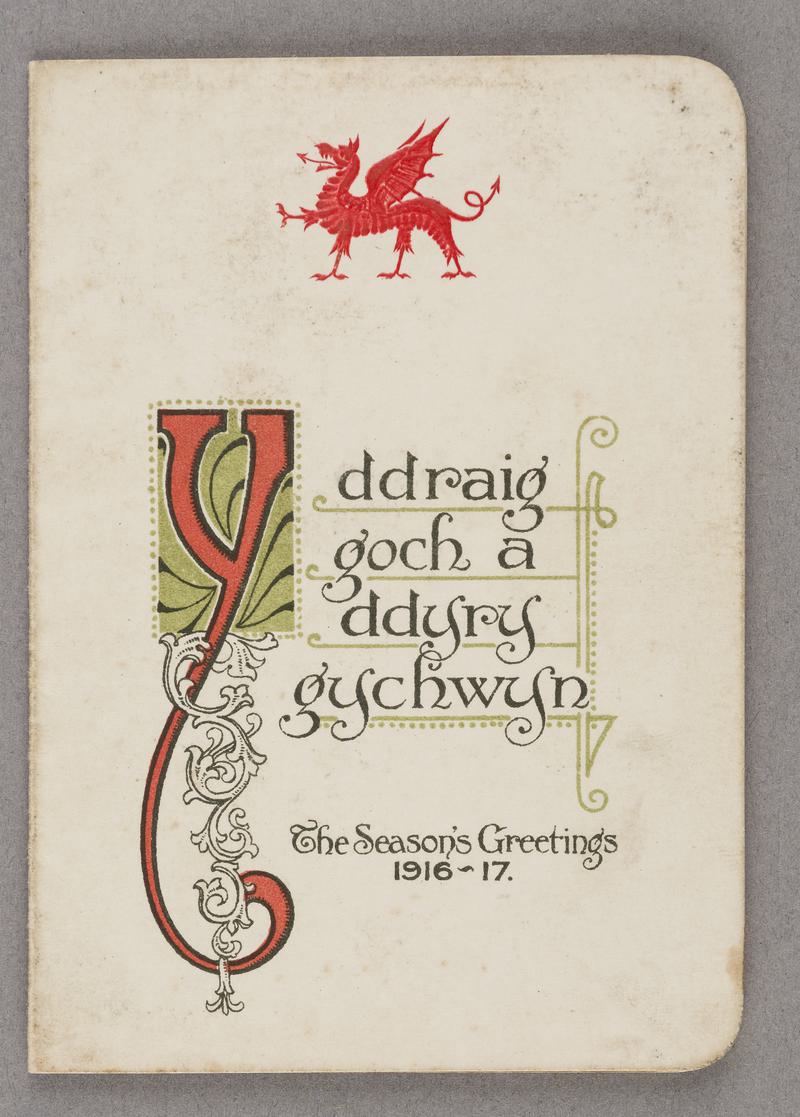 Boer War Christmas card. Folded card showing on the front an armoured blue-jacket sailor of the Royal Navy ready to do land action during the Boer War and a patriotic exhortation by Nelson. Christmas greetings are printed inside only.