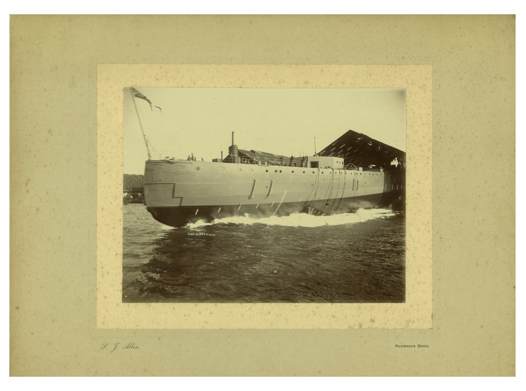 H.M.S. MONTAGUE. Built at Devonport Dockyard, and launched in 1901. She was wrecked off Lundy on 30 May 1906. Attempts by the Navy to rescue her ended in chaos. The Navy officially abandoned her in 1907 after removing the valuable guns, and she was then handed over to private salvage companies.