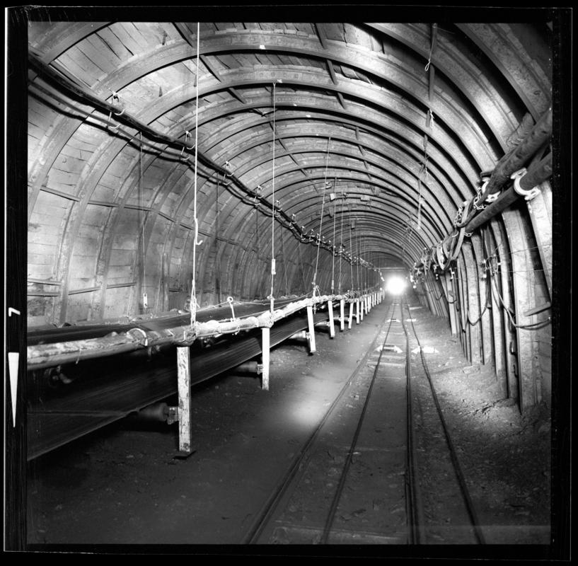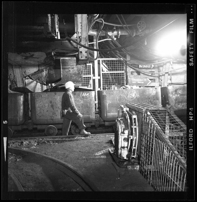 Coal drams at an underground loading point, Cynheidre Colliery.