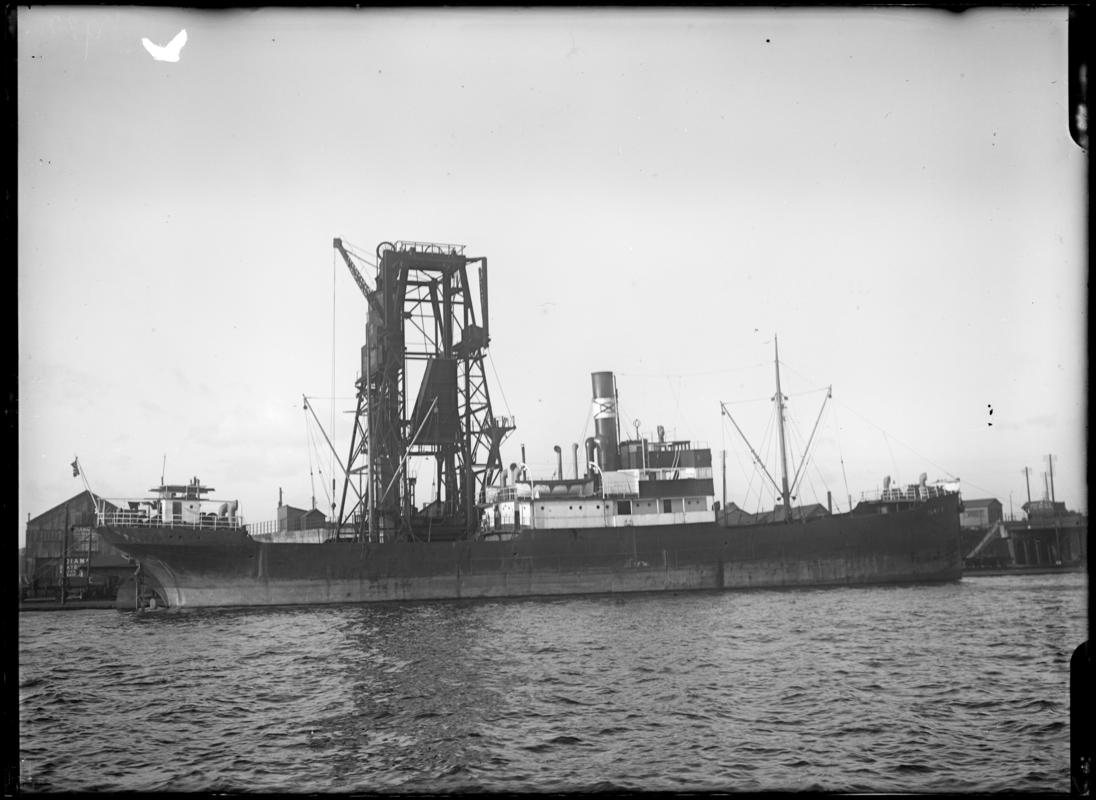 Starboard broadside view of S.S. ELNA E, c.1936.
