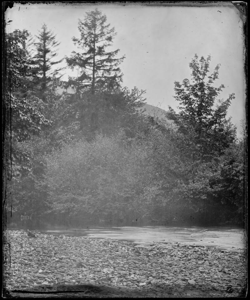 Collodion glass negative. The River Ely at Lanelay near Llantristant.