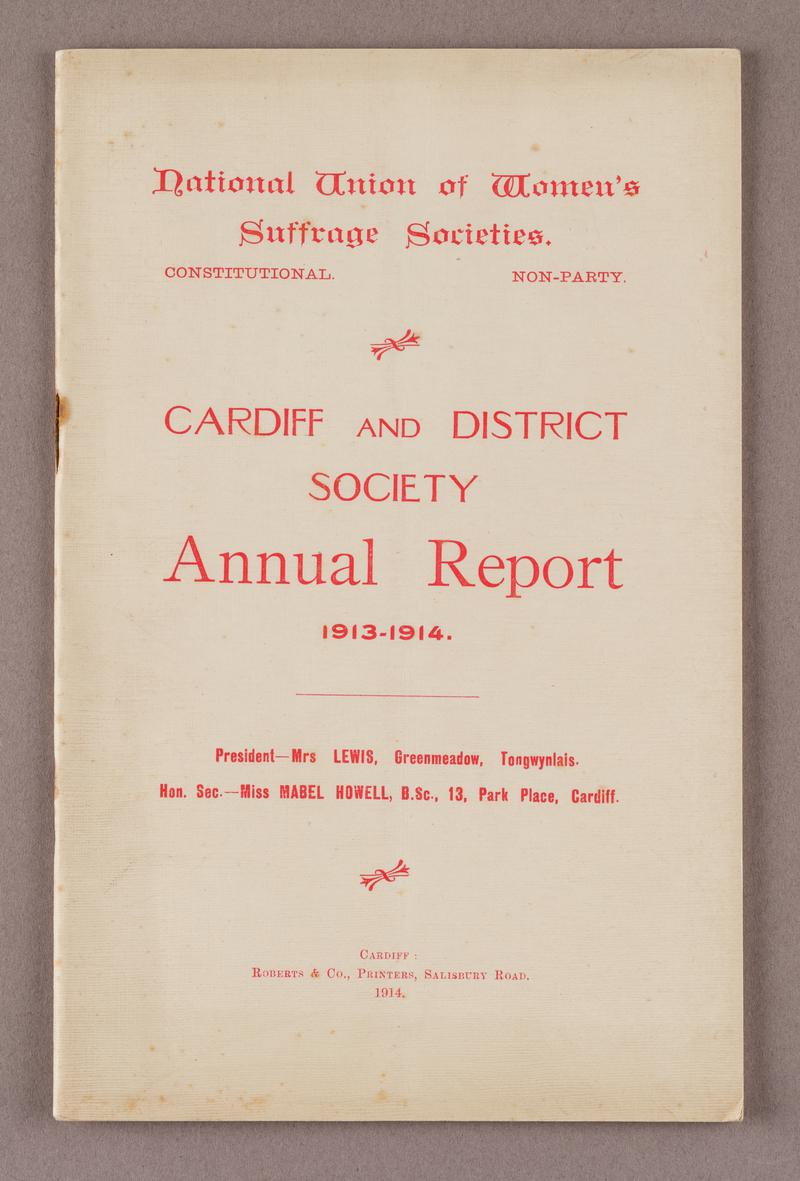 Adroddiad blynyddol Cymdeithas Pleidlais i Fenywod Caerdydd a'r Cylch, 1911-12. Cynhaliodd y Gymdeithas ddigwyddiadau i godi arian ac ymwybyddiaeth o'u hachos. Mae adroddiad 1911-12 yn rhestru eu gweithgareddau codi arian. Yn eu plith, roedd dawns wisg ffansi, gyrfa chwist a ffair sborion.