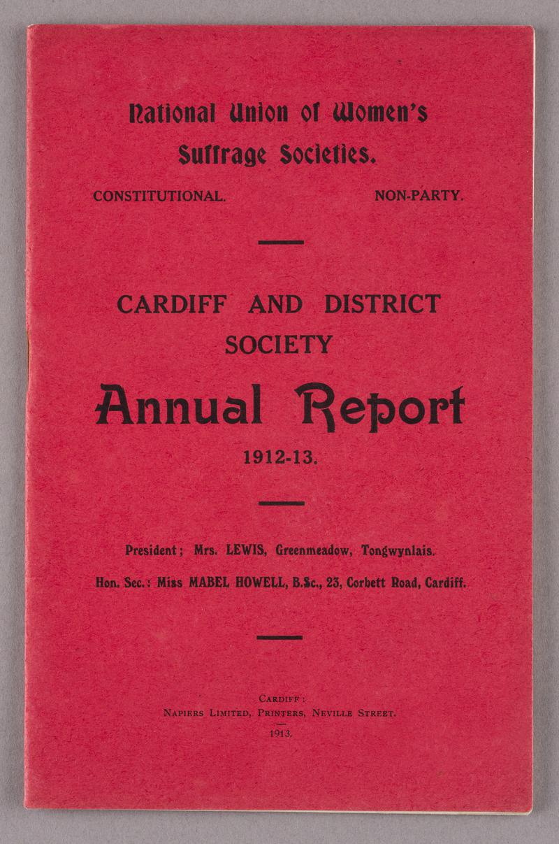 Adroddiad blynyddol Cymdeithas Pleidlais i Fenywod Caerdydd a'r Cylch, 1911-12. Cynhaliodd y Gymdeithas ddigwyddiadau i godi arian ac ymwybyddiaeth o'u hachos. Mae adroddiad 1911-12 yn rhestru eu gweithgareddau codi arian. Yn eu plith, roedd dawns wisg ffansi, gyrfa chwist a ffair sborion.